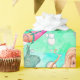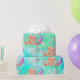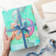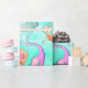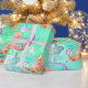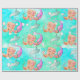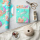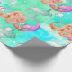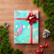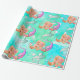 A bright Mermaid on an aqua blue background is the basis of this wrapping paper design.