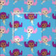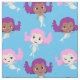 Mermaid Cartoon Pattern on Blue Fabric