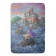 If you love mermaids, then this painting is for you. Mermaid Castle painted by Traci Van Wagoner features a mermaid with purple hair in front and a mermaid with green hair sunning herself on rock islands while another mermaid with pink hair swims in the ocean in front of a castle with a purple, orange and yellow sunset sky behind. This beautiful and whimsical fantasy art makes a great gift and a stunning decoration for your office or home.