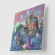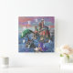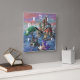 If you love mermaids, then this painting is for you. Mermaid Castle painted by Traci Van Wagoner features a mermaid with purple hair in front and a mermaid with green hair sunning herself on rock islands while another mermaid with pink hair swims in the ocean in front of a castle with a purple, orange and yellow sunset sky behind. This beautiful and whimsical fantasy art makes a great gift and a stunning decoration for your office or home.