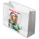 A festive large glossy gift bag featuring a Christmas mermaid design. Personalise it with a name for an extra special touch. Perfect for holding a full kids’ gift set or multiple holiday surprises.