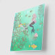 Square clock for female kids. The design is a mermaid with pretty pink hair, fish, sea grasses, and a green sea. Wonderful design for a kids room. The design is permanent, but, you can add a name. Thanks to the Hungryjpeg, and Creative Fabrica for some of the elements in the design.