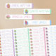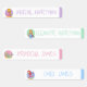 Personalised name labels - perfect back to school supplies for kids and students of any age. Cute mermaid design and pastel colour palette of pink purple green and blue. You can use up to 4 different names in handwritten style typography. If you want to change the font, colour or size, click to customise further and edit using the design tool.