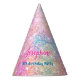 Make your little one’s celebration sparkle with this Mermaid colourful whimsical birthday custom Party Hat. Featuring a vibrant iridescent faux glitter background that shines with radiant ocean inspired hues, this playful design highlights a custom name for a fun and personalised touch. The faux glitter effect adds magical shimmer without any mess, creating a whimsical mermaid vibe that perfectly complements your party theme. Perfect for birthday guests of all ages, these party hats bring festive flair and coordinated charm to your under the sea celebration.