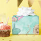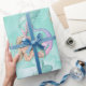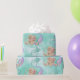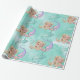 A cute Mermaid on an aqua blue background is the basis of this wrapping paper design.