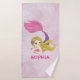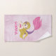 Pink and Gold Resting Mermaid Design bath Towel Set with customisable text.