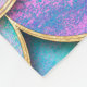 Mermaid fish scale wave japanese seamless pattern. Watercolor hand drawn teal purple golden background. Watercolour scales shaped texture. Paper cut style, 3d effect.