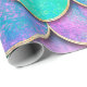 Mermaid fish scale wave japanese seamless pattern. Watercolor hand drawn teal purple golden background. Watercolour scales shaped texture. Paper cut style, 3d effect.