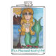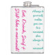 The flask itself is fine. It’s a cheap flask, obviously bought in bulk, however am prepared to overlook that. Given that it is a personalized item, I would have liked to have seen gift boxing instead of the generic packaging. Terrible printing, and/or quality. It’s a cheap, tacky vinyl. It is not cut straight and is also applied in a way that it is overhanging the bottom, causing the glue to catch on items and it will eventually roll and tear, damaging the wrap.