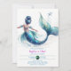 Dive under the sea with this mermaid themed 1st birthday invitation for girls, featuring a gorgeous watercolor painting of a little mermaid with a shimmering, iridescent tail in a flowing swimming pose (these are digital effects, not real foil or glitter!). Celebrate your little mermaid with this cute one-derful invitation that fits the under the sea theme, mermaid theme.