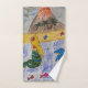 What is happening on the island? The pretty mermaid and her colorful dolphin friend watch safely from the blue sea as the volcano erupts, spewing steam and as into the air and sending red-hot lava flowing down the hillside. The golden sand of the beach is strewn with colorful starfish and lush green palm trees grow on the lower slopes of the volcano.
