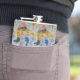 The flask itself is fine. It’s a cheap flask, obviously bought in bulk, however am prepared to overlook that. Given that it is a personalized item, I would have liked to have seen gift boxing instead of the generic packaging. Terrible printing, and/or quality. It’s a cheap, tacky vinyl. It is not cut straight and is also applied in a way that it is overhanging the bottom, causing the glue to catch on items and it will eventually roll and tear, damaging the wrap.