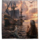Mermaid Looking At A Sailing Ship Shower Curtain