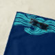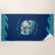 Transport yourself to an aquatic paradise with our enchanting beach towel adorned with a mesmerising mermaid and swirling beach waves in serene blues and turquoise hues.