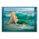 A lovely mermaid sits on a sandy shore amid sparkling aqua waves. This fanciful design was inspired by the art of William-Adolphe Bouguereau (The Wave.)