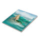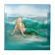 Mermaid on Shore with Aqua Waves and Seagulls Ceramic Tile