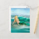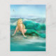 Mermaid on Shore with Aqua Waves and Seagulls Postcard