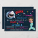 Take a bite out of your child's sharktastic birthday with this Shark Attack party invitation featuring shark, brunette dark skinned mermaid and some stars.