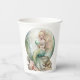 Mermaid Paper Cups - A beautiful, long fair-haired mermaid, pale pink flowers in her hair and on her body, her tail is made up with green and gold scales, glistening in the sparkly sea. She is sitting on a rock, holding a large green and white orb. What's inside? Could be a pearl, some gold or some other mysterious treasure. On the back is the writing - This is        My Cup - with space to write the name of the owner at the party!
