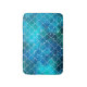 A fluffy bath mat featuring a digitally created mermaid scallop pattern layered over top of a blue and green galaxy background. Perfect for a girls bathroom who loves mermaids!