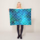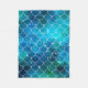 A warm and cosy fleece blanket featuring a beautiful mermaid inspired scallop pattern layered over top of a turquoise galaxy background.