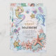 A magical mermaid birthday party invitation under the sea scene with sea shells, dolphin, coral, tortoise and starfish. Pretty watercolor with cute mermaid. Create a magical whimsical theme for a summer season birthday to customise for any age from ages 1-6 or over.