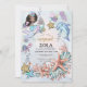 A magical mermaid birthday party invitation under the sea scene with sea shells, dolphin, coral, tortoise and starfish. Pretty watercolor with cute mermaid. Create a magical whimsical theme for a summer season birthday to customise for any age from ages 1-6 or over.