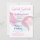 This adorable invitation features a colourful mermaid tail with faux gold glitter embellishments.