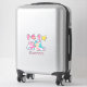 The stick looks amazing. Unfortunately, it would not stick on our suitcase as it was textured. When we found a non-textured (smooth) suitcase, the sticker stuck and looks great. The printing looked awesome.