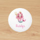 A white background decorated with a cute pink mermaid princess. Personalise and add a name, pink letters.