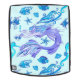 Beautiful, Weird, Purple and Turquoise Fairy Ocean Creature, this Mermaid is Swimmingm and looks like playing, surrounded by Starfishes, sea shells, seaweed, Fishes, and holding a little Seahorse on her hand; all the elements are assembled to compose a Fantasy Pattern. Vector Illustration Copyright BluedarkArt.