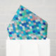 Tissue paper in a pattern of fantasy mermaid scales, in seaglass-inspired colours of aqua, shell pink, turquoise, seafoam green, and cobalt blue