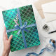 This beautiful gift wrap features a shiny background of mermaid scales in colours ranging from deep sea green through aqua and teal blue. Search ID600 to see other products with this design.