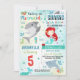 Uniquely designed Mermaid Shark invitation. Perfect for your mermaid and shark party!
