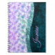 Make back to school fun with this Cute Personalized Notebook. It is designed with elegant girly mermaid skin iridescent faux glitter in teal turquoise purple silver.