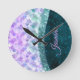 Mermaid skin teal silver faux glitter monogram round clock