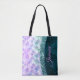 Pretty chic and elegant girly mermaid skin iridescent faux glitter in teal turquoise purple silver tote bag. Beautiful, modern and cool bag for the trend-savvy and art-loving hip trendsetter. Easily personalise this trendy chic tote bag design with your name. This stylish design would be great for girls who enjoy classy sparkly designs. Show off your personal style, look fashionable, trendy and feel stylish with a unique design that you can also customise it over another product of your choice. Whether for valentines day, Christmas or as a gift in general it makes a great gift idea for any woman who loves modern sparkly elegance. PLEASE NOTE: These are flat printed graphics - no real glitter, jewels or raised parts.
