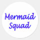 Distinctive Mermaid Squad lettering on a sticker. Comes in a variety of shapes and sizes