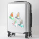 The stick looks amazing. Unfortunately, it would not stick on our suitcase as it was textured. When we found a non-textured (smooth) suitcase, the sticker stuck and looks great. The printing looked awesome.