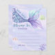 "Under the Sea" themed birthday invitation. Watercolor pastel purple and blue hues, featuring playful mermaid tail, clown fish, and corals.