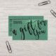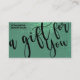 This is the perfect gift certificate business card for a trendy, stylish, girly, and modern businesswoman. This design features a simple black handwritten brush script typography on a faux printed sparkly mermaid teal glitter and mermaid green ombre gradient glamourous and chic background. It's the perfect way to allow your customers to buy a gift for their family and friends and at the same time promote your business.