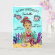 This cute ethnic African-American or Hispanic mermaid card was hand drawn by myself, and features a pretty blonde mermaid with her freinds, the octopus, fish, starfish and coral. The inside of the card has a bonus page for the birthday girl to colour! Hope you like it and thank you for looking! All my cartoon drawings were inspired by my own little grandkids.