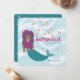 Classroom Valentine card with a pun that reads: "we mermaid to be friends!". Card features a mermaid wearing a starfish hair accessory and fish swimming in the background. Back of the card feature swimming fish. Colours of the card include: purple, magenta, teal, blue, orange. A smaller 2.5" x 2.5" version also available.