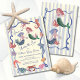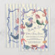 Whimsical hand drawn stripes Mermaid Under the Sea Baby Shower party invitations. Features a merman and mermaid surrounded by sealife and wiggly wavy frame. Colours of blues and other pastel colours. All wording can be changed. To make more changes go to Personalise this template. On the bottom you’ll see “Want to customise this design even further? Click on the EDIT using Design tool. From there you can change some of the fonts & some colours, move things around or delete what you need.