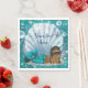 Mermaid under the sea paper napkins with adorable African American mermaid baby in a pretty clam shell on a beautiful teal blue background. You can add text in the font style and colour of your choice to personalise for your event. This is a printed design with no real jewels, glitter, etc.
