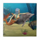 Two friends, cute mermaid swimming with a dolphin in a blue fantasy ocean