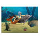 Two friends, cute mermaid swimming with a dolphin in a blue fantasy ocean