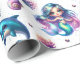 This dreamy seamless pattern shimmers with underwater enchantment, featuring a graceful mermaid surrounded by dolphins, seahorses, jellyfish, starfish, and scattered seashells—all rendered in glowing iridescent hues. The luminous palette gives each element a magical, pearlescent quality, like treasures glimpsed beneath sunlit waves. Perfect for partyware, stationery, or summer décor, it’s special because it captures the wonder of the sea with a coquette twist—elegant, playful, and utterly captivating.