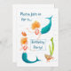 A Birthday Party Invitation with mermaids, from a watercolour painting by Judy Adamson. The inside is left blank for you to add the party details. Matching gifts and other greeting cards also available.