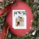 Celebrate newlywed holiday cheer with this elegant silver foil holiday card featuring a modern photo layout and “Merrier Together” typography. Soft winter greenery with snowy pine, eucalyptus, and blue berries frames the design for a romantic seasonal look. Personalize with names and wedding date. Backside includes a coordinating greenery accent with an additional photo.